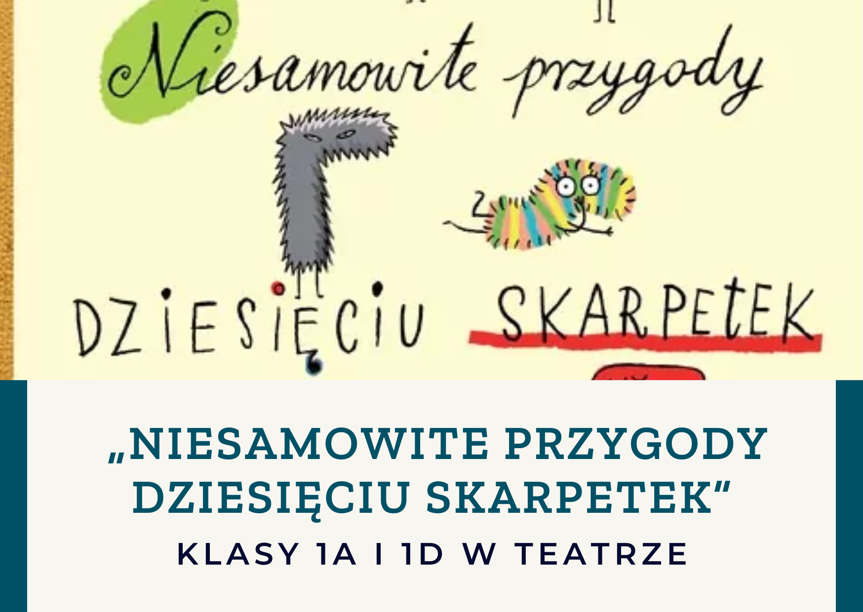 Uczniowie klas 1a i 1d uczestniczyli w wyjeździe do Teatru Dzieci Zagłębia im. Jana Dormana w Będzinie, gdzie obejrzeli spektakl pt. „Niesamowite przygody dziesięciu skarpetek”.