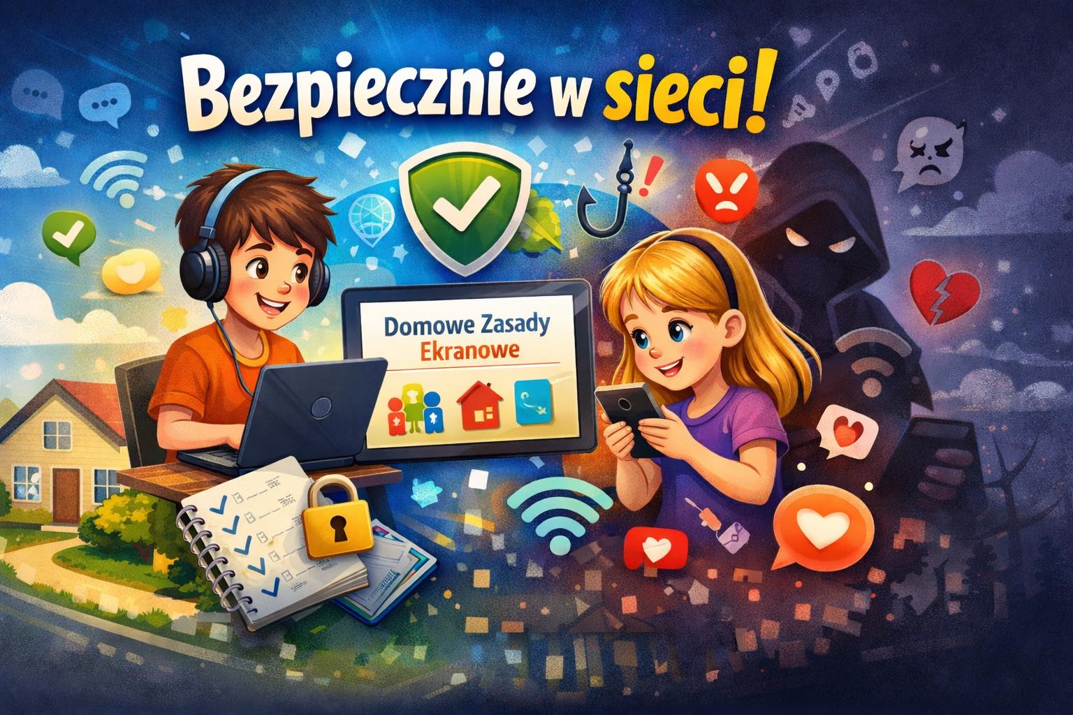 Styczeń i luty to w naszej szkole czas, w którym szczególnie uważnie pochylamy się nad tematami bezpieczeństwa w internecie, hejtu, cyberprzemocy oraz aktywności dzieci w sieci. Rozmawiamy, uczymy się i przypominamy, że internet potrafi być miejscem pełnym możliwości… ale też wyzwań i zagrożeń.