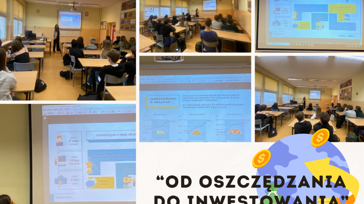 Uczniowie klasy VIII na lekcji “Od oszczędzania do inwestowania”