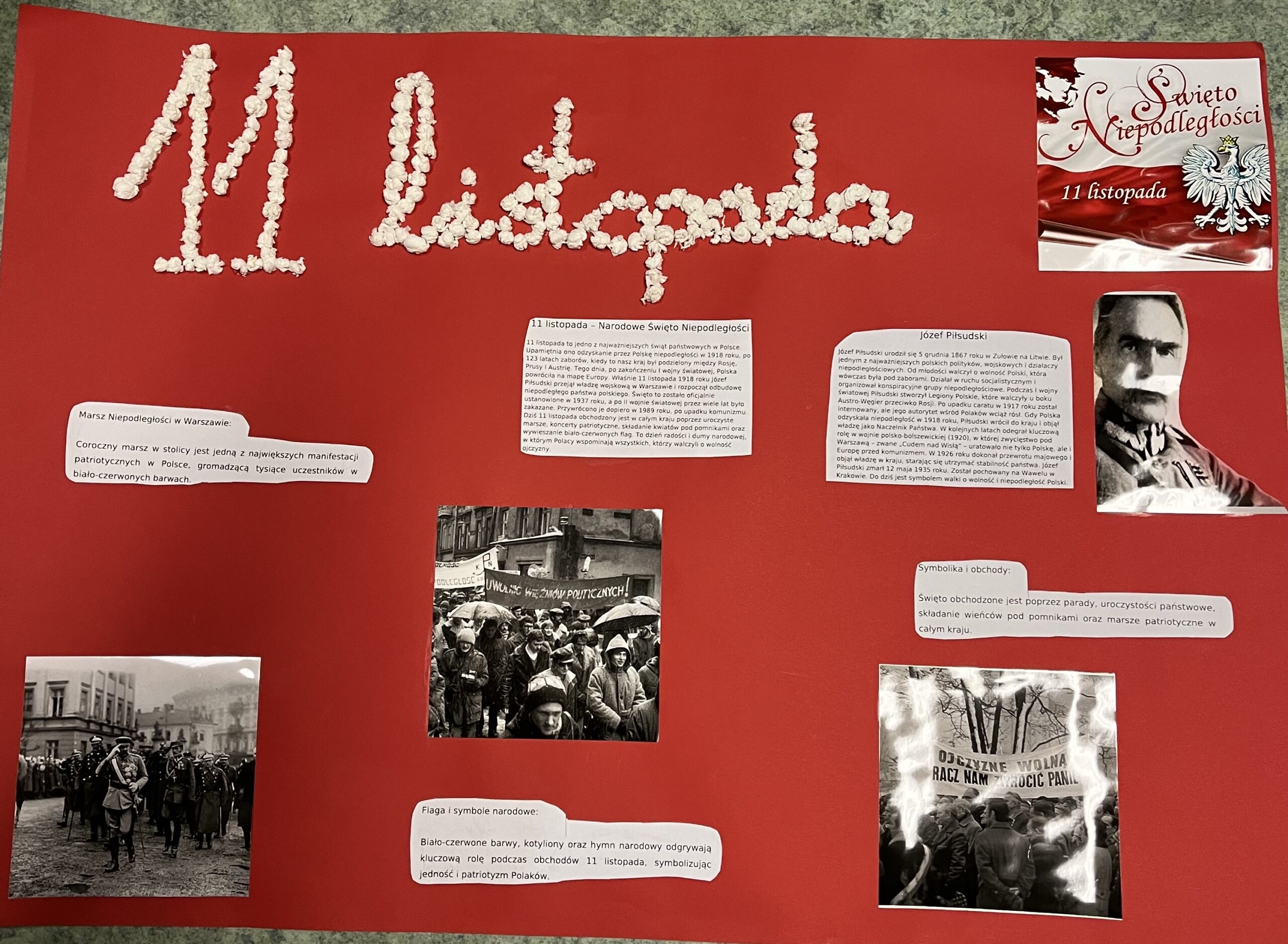 Uczniowie klas 4–8 uczcili Narodowe Święto Niepodległości 🇵🇱 uczestnicząc w szkolnym konkursie historyczno-plastycznym.