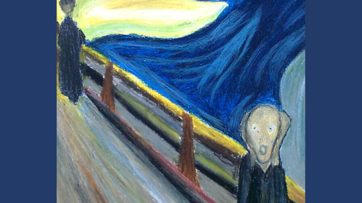 Tym razem prezentujemy pracę wykonaną przez uczennicę klasy 7e Julię Cappuccio. Inspiracją Julii było dzieło Edvarda Muncha (1863–1944)„Krzyk”. Obraz norweskiego artysty od ponad stu dwudziestu lat budzi zainteresowanie i działa na wyobraźnię literatów, filmowców, grafików i twórców popkulturowych. Dowodem na to nieustanne zainteresowanie jest słynna maska z horroru „Krzyk” Wesa Cravena. Sam Edvard Munch tłumaczył, że bezpośrednią inspiracją dla powstania tego ekspresjonistycznego obrazu był spacer