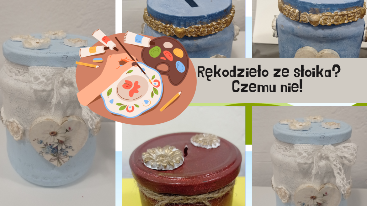 https://sp45.edu.pl/wp-content/uploads/2025/10/Rekodzielo-ze-sloika-Czemu-nie--1030x731.png 1030 731 Los Majkelos Los Majkelos https://secure.gravatar.com/avatar/96eacdbeae07327cd9480385eb550516?s=96&d=mm&r=gNa wrześniowych zajęciach szkolnego Koła Rękodzielniczego uczennice z klas 6c i 8b wykonały własnoręcznie skarbonki. Do ich stworzenia wykorzystały szklane słoiki, które następnie zostały pomalowane i ozdobione różnorodnymi materiałami dekoracyjnymi.