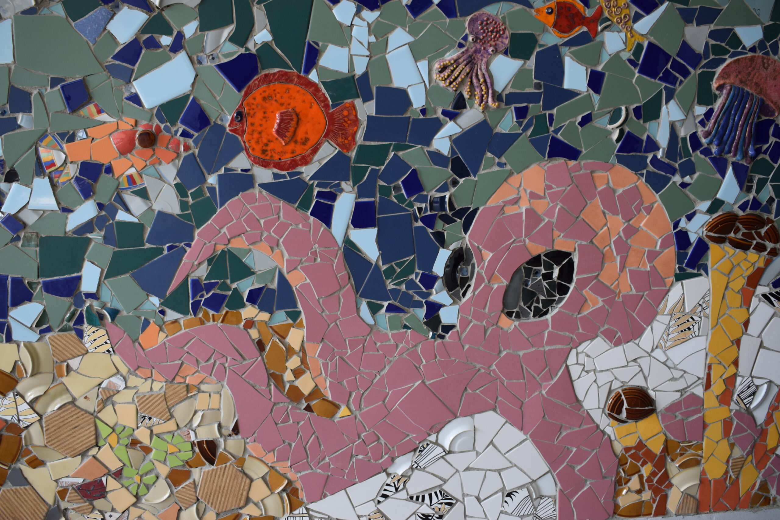 🌊 Nasz szkolny mural przedstawia „Świat podwodny” 🐠🐚🐙.