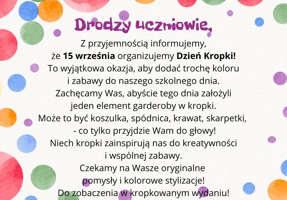 Niech kropki dodadzą kolorów i kreatywności naszemu szkolnemu dniowi 🎉