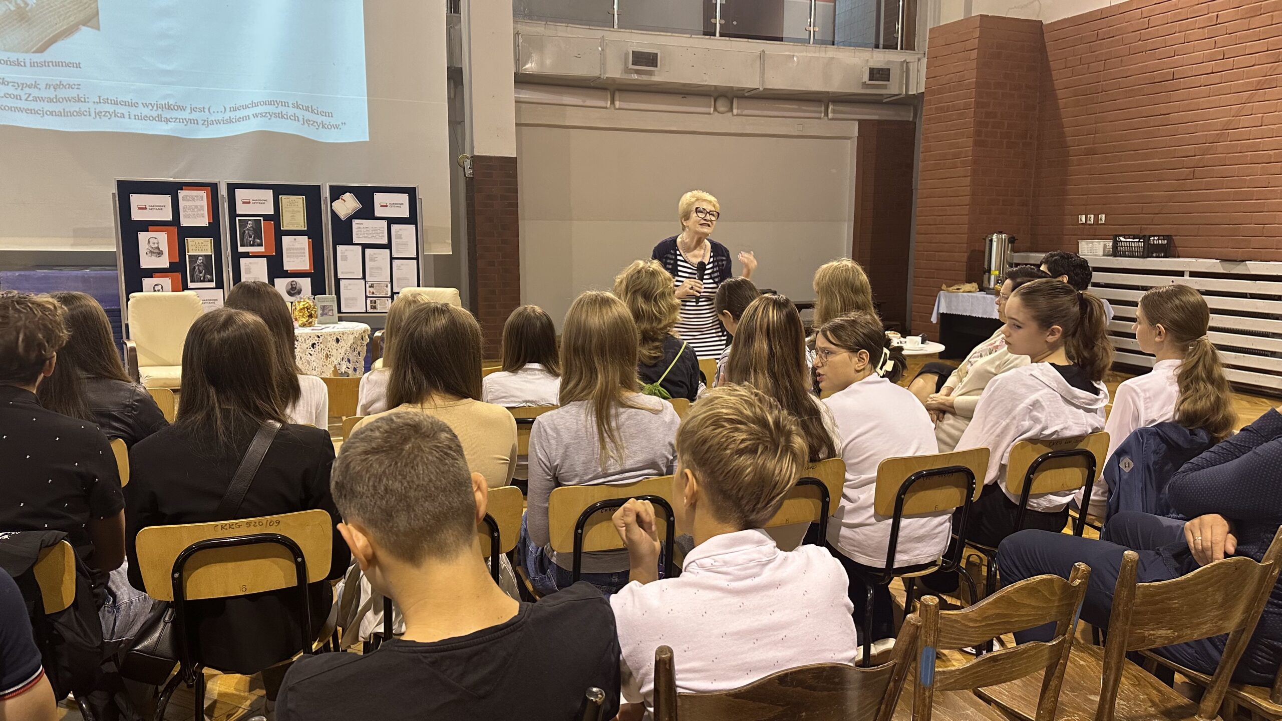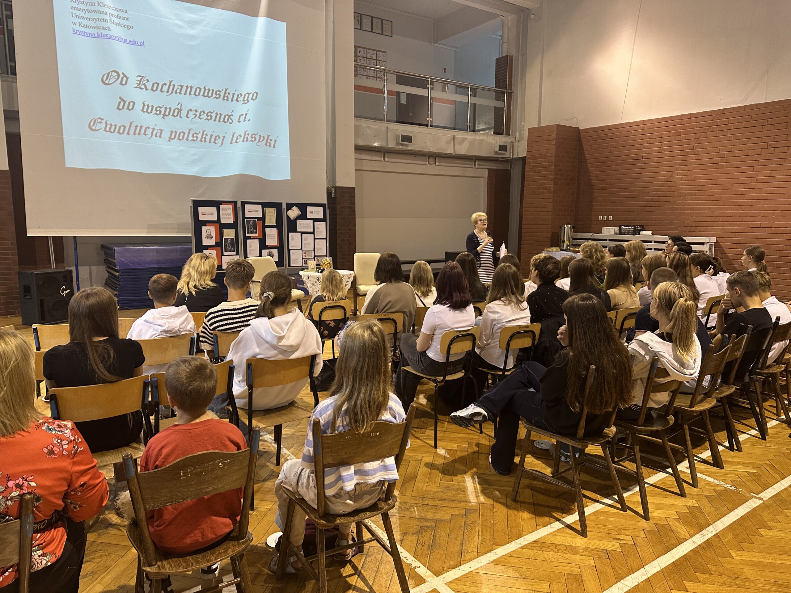 Punktem kulminacyjnym wydarzenia był znakomity wykład prof. zw. dr hab. Krystyny Kleszczowej pt. „Od Kochanowskiego do współczesności. Ewolucja leksyki polskiej”. Dzięki Pani Profesor mogliśmy spojrzeć na język poety w szerszym, historyczno-językoznawczym kontekście – z pasją, wiedzą i ogromnym zaangażowaniem. W świat przekładu Psałterza Dawidowego Jana Kochanowskiego wprowadził nas polonista pan Paweł Baryś.