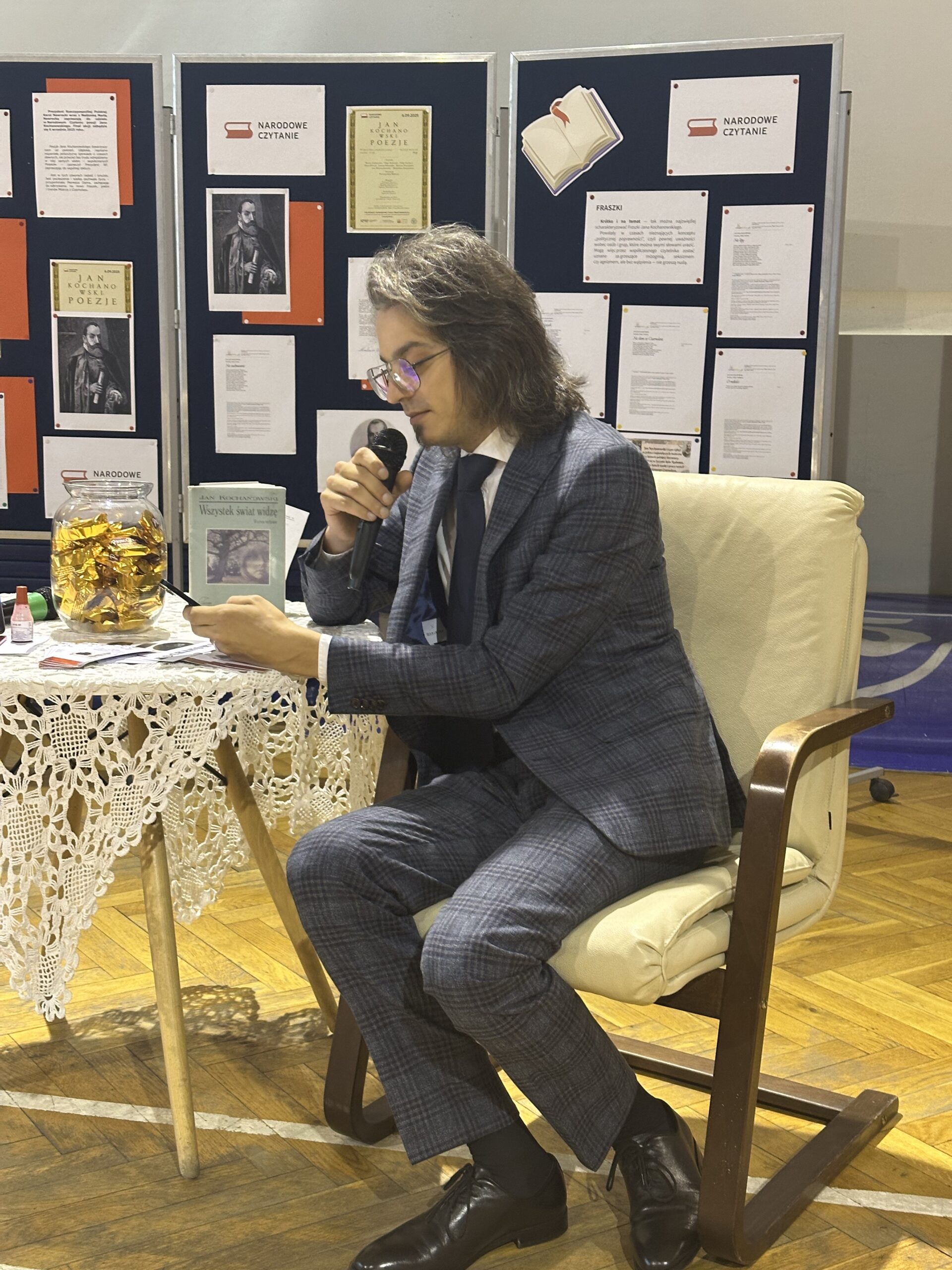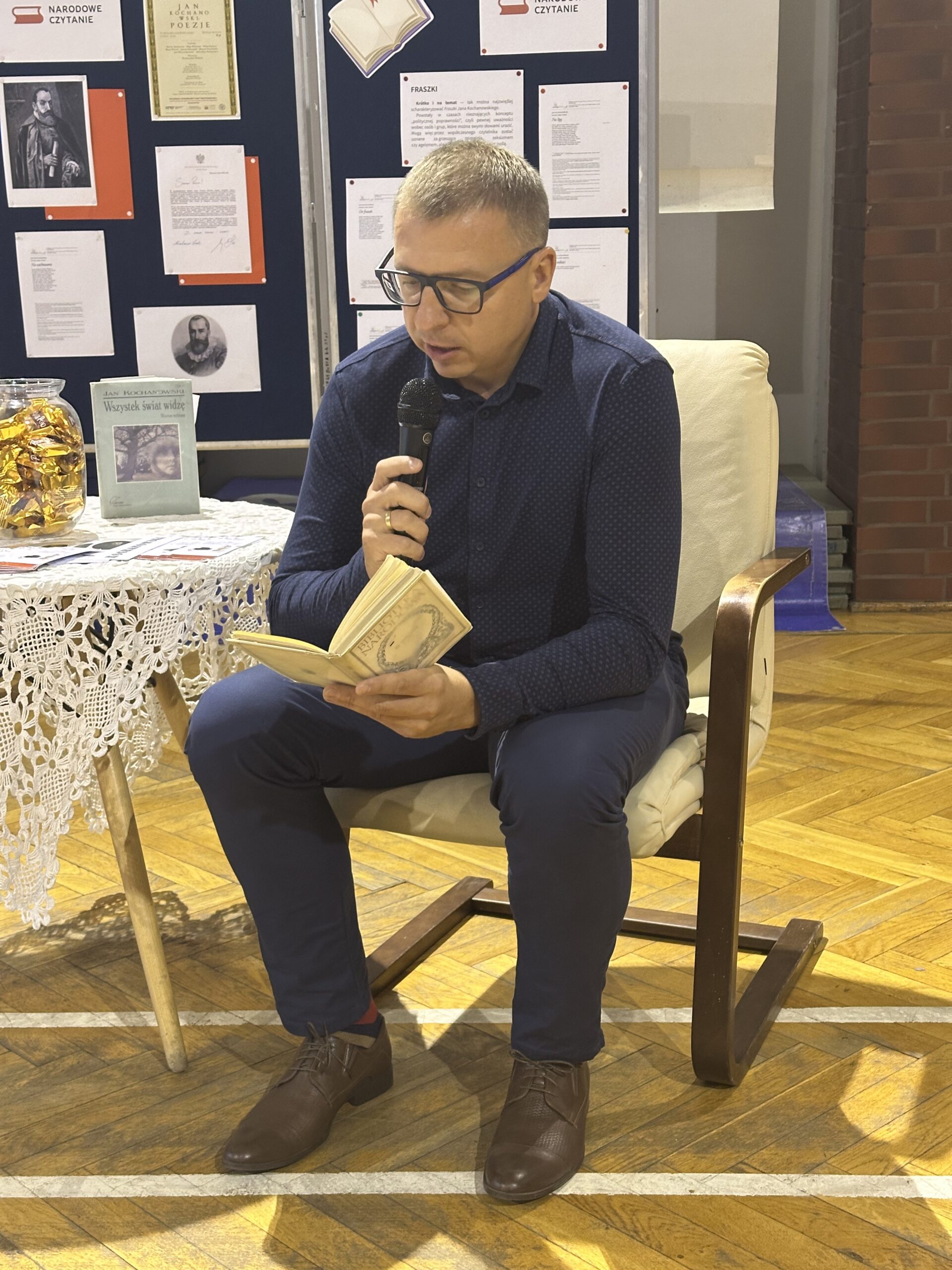 W sobotę, 6 września 2025 roku o godzinie 11:00 aula naszej szkoły wypełniła się wyjątkową atmosferą – wszystko za sprawą tegorocznej edycji Narodowego Czytania, poświęconej twórczości Jana Kochanowskiego.