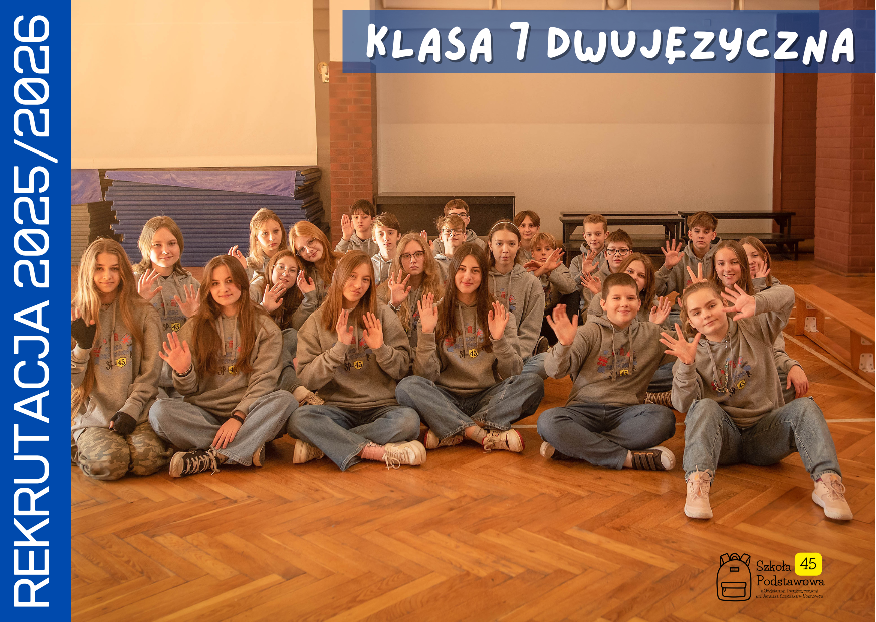 Zapraszamy do 7 klasy dwujęzycznej, która od września 2026 roku rozpocznie naukę w naszej szkole. Nauczanie to polega na tym, że wybrane przedmioty w naszej szkole: matematyka, geografia, biologia, chemia, fizyka, wiedza o społeczeństwie, informatyka (wyboru przedmiotu w danym roczniku dokonuje szkoła) – wykładane są w dwóch językach: polskim i angielskim.