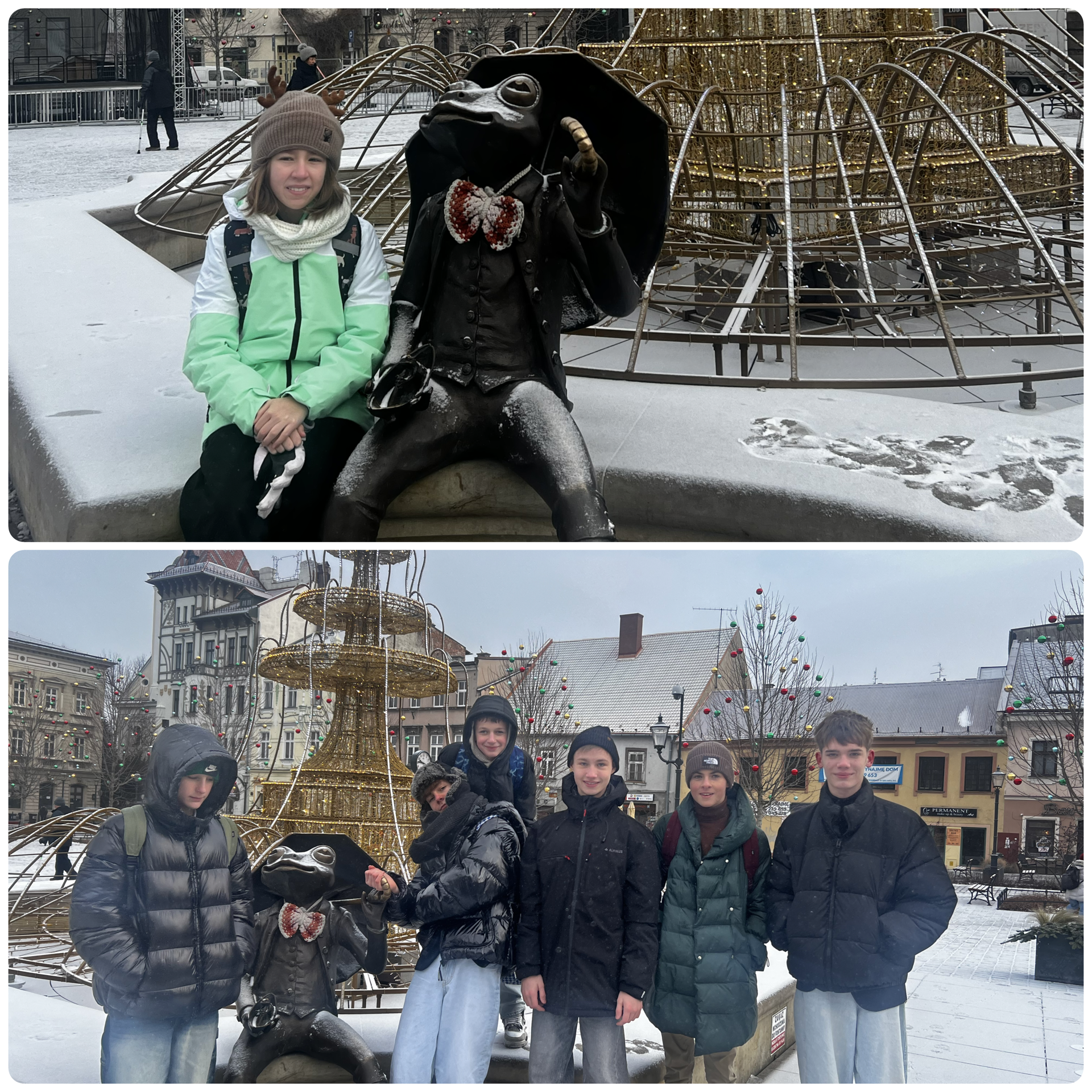 7 stycznia 2026r. uczniowie naszej szkoły wraz z rodzicami wzięli udział w wyjątkowym wyjeździe do Bielska-Białej. Była to nie tylko teatralna uczta, ale również cenna lekcja historii i poznawania miasta. Uczestnicy mieli okazję zwiedzić urokliwy rynek, który zachwycił świąteczną atmosferą i architekturą.