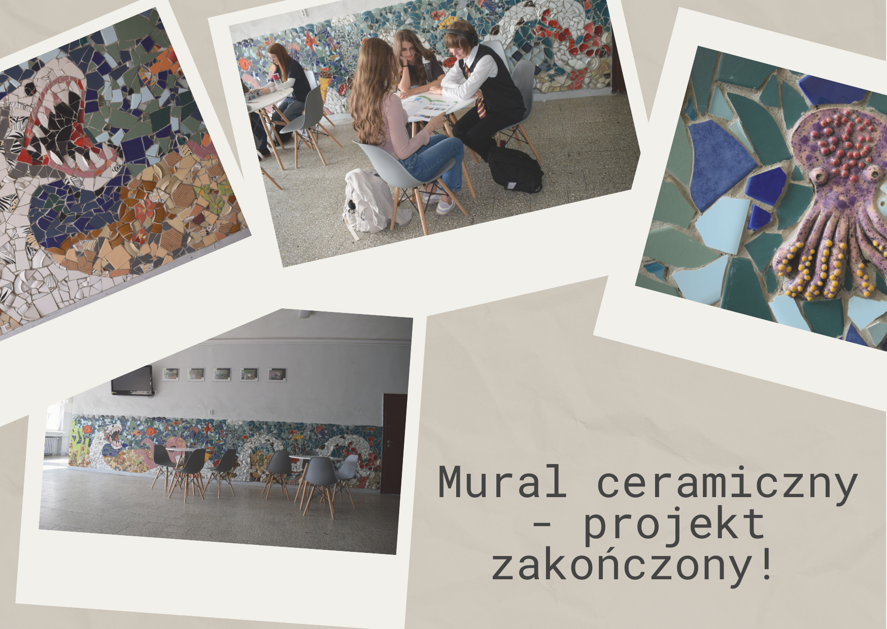 Na II piętrze 🏫 obok sali plastycznej 🎨 i biologicznej 🔬 pojawiły się nowoczesne stoliczki i krzesełka 🪑☕, ale prawdziwą atrakcją jest mural ceramiczny.