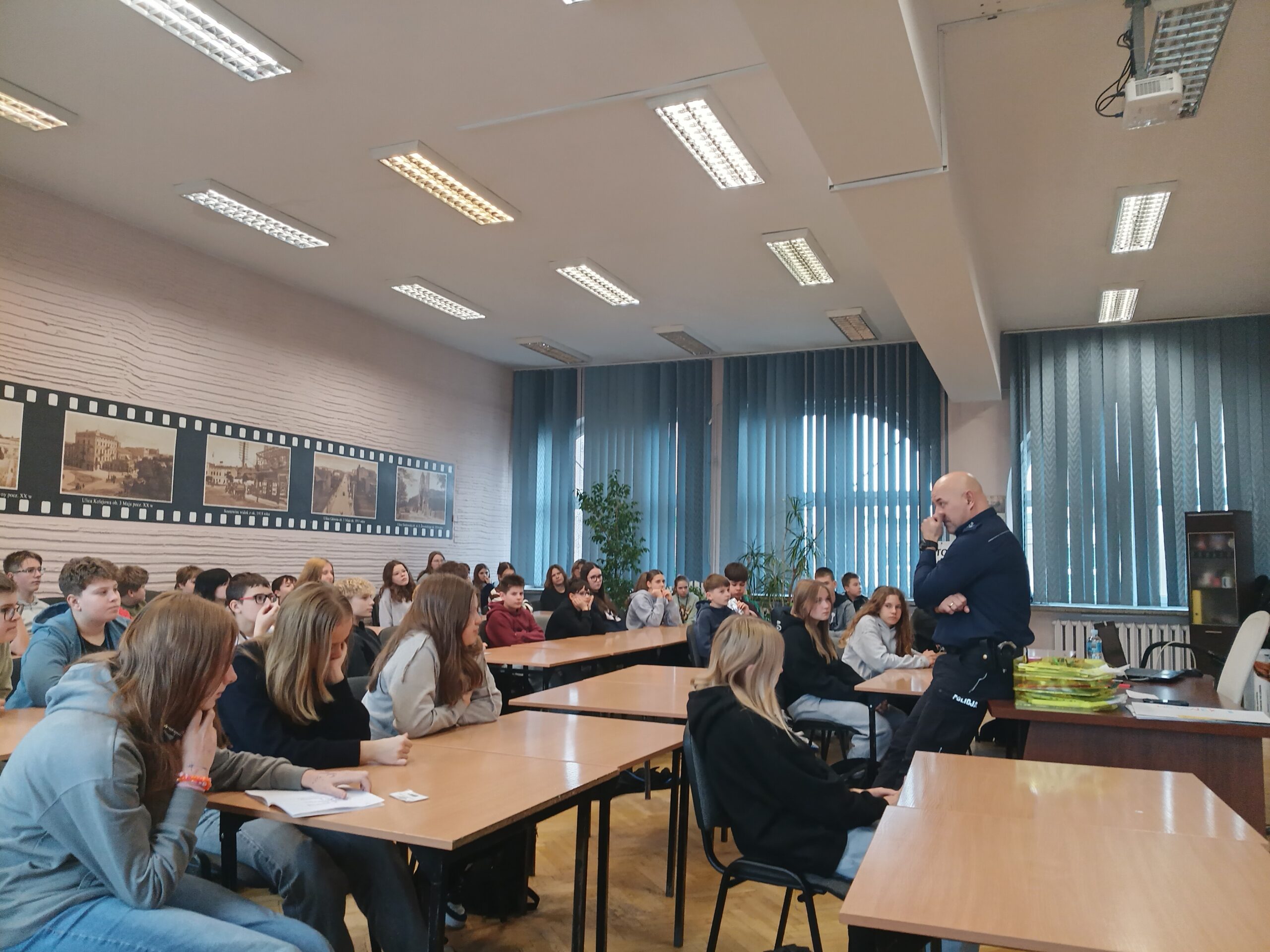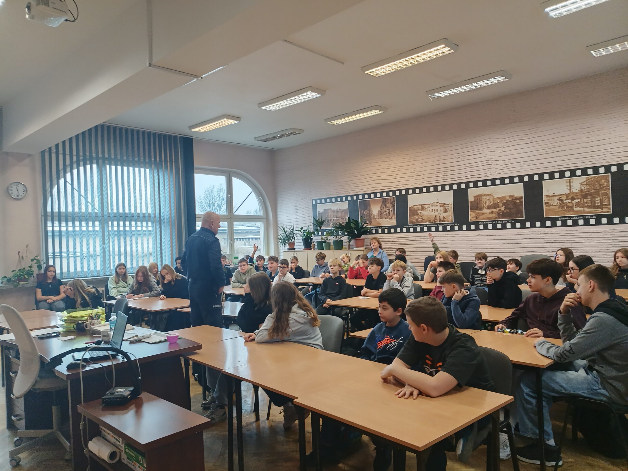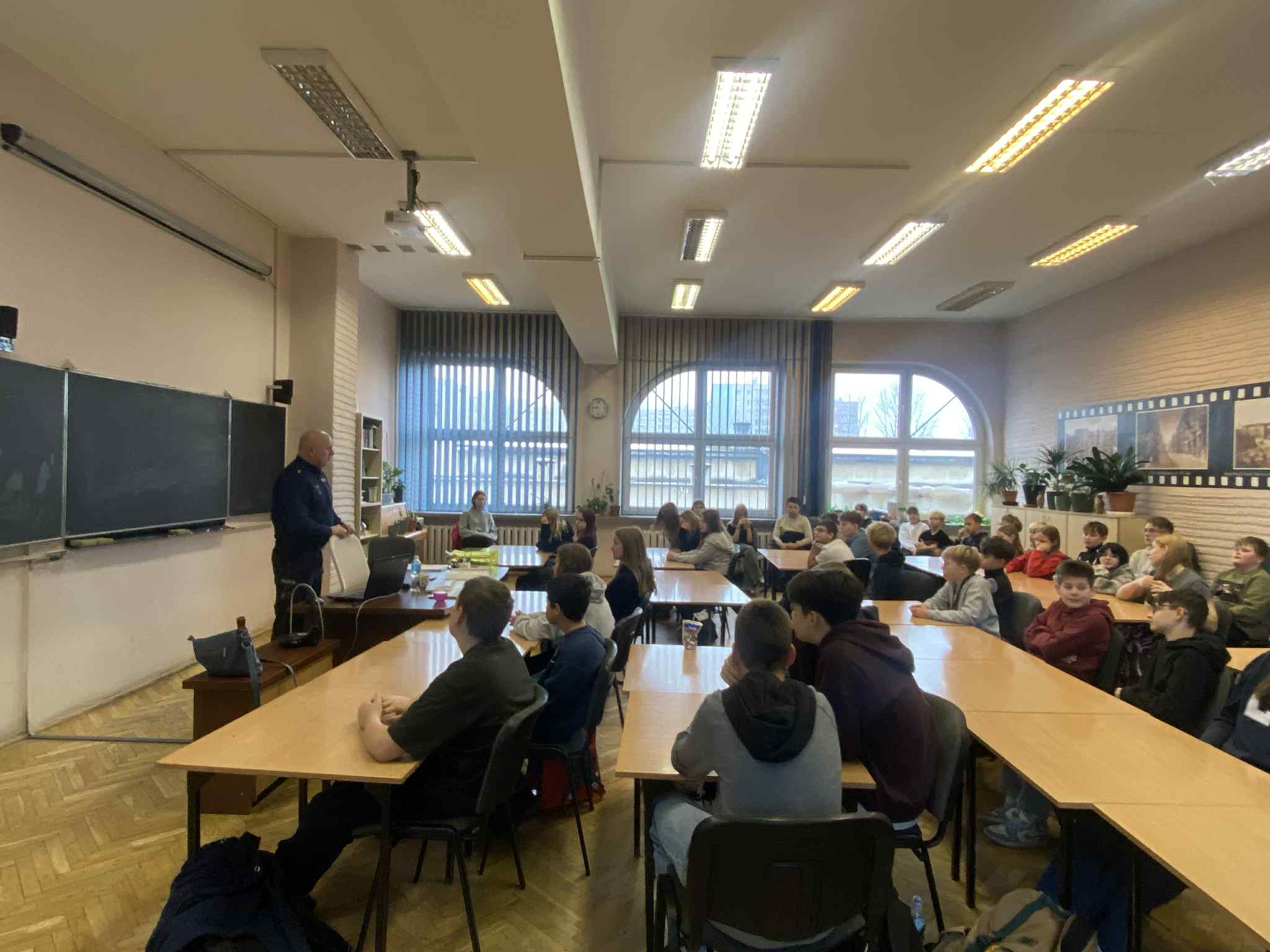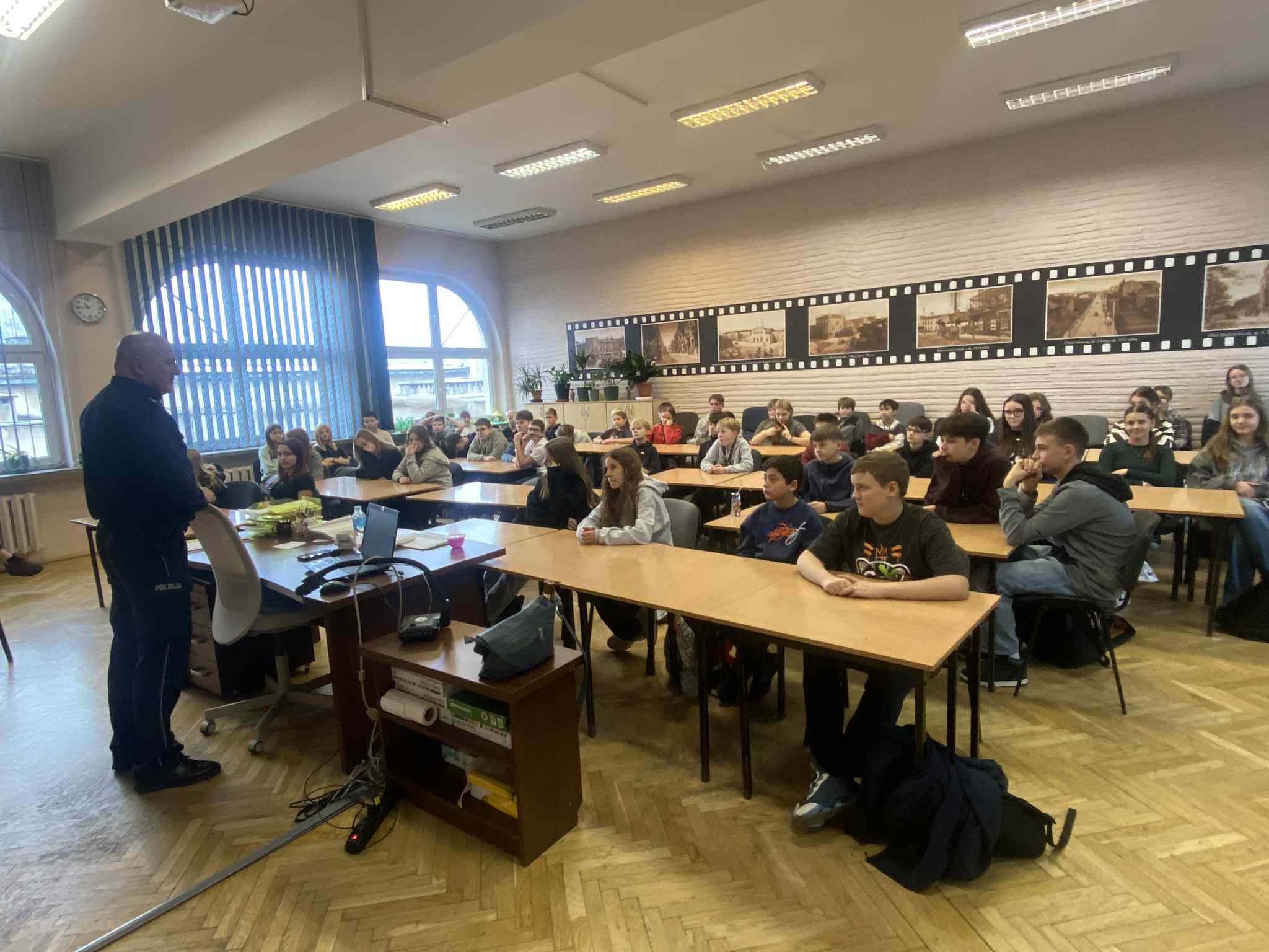 W piątek, 28 listopada, w naszej szkole odbyły się prelekcje prowadzone przez funkcjonariusza Komendy Miejskiej Policji