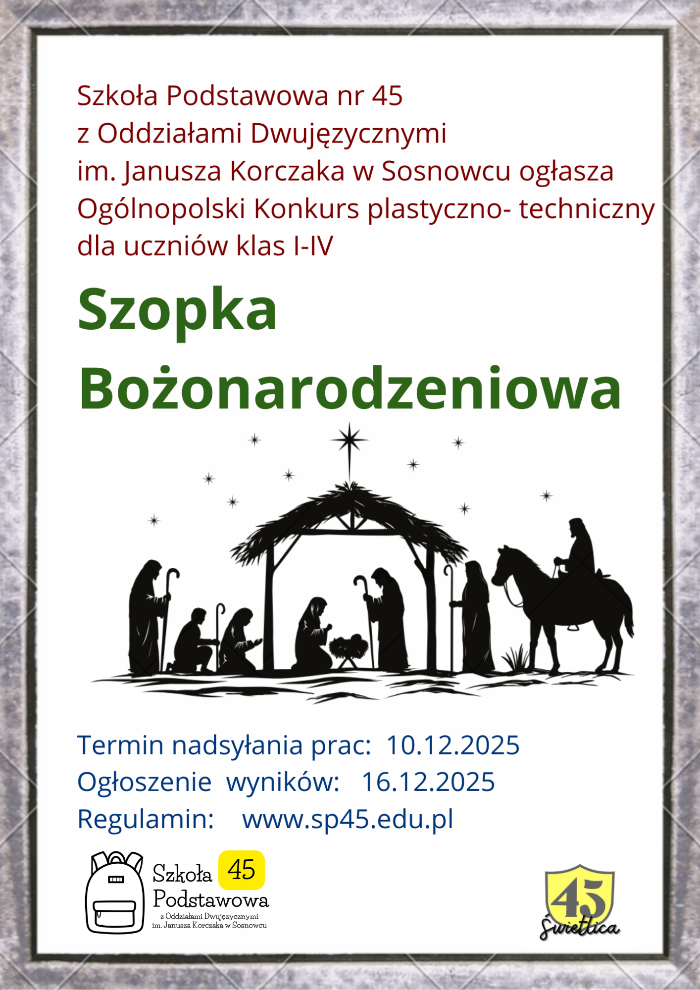 https://sp45.edu.pl/wp-content/uploads/2025/11/„SZOPKA-BOZONARODZENIOWA-1030x731.png 1030 731 Los Majkelos Los Majkelos https://secure.gravatar.com/avatar/96eacdbeae07327cd9480385eb550516?s=96&d=mm&r=g 20 listopada 2025 20 listopada 2025 <<< REGULAMIN KONKURSU >>> <<< ZGODA NA UDZIAŁ W KONKURSIE >>>