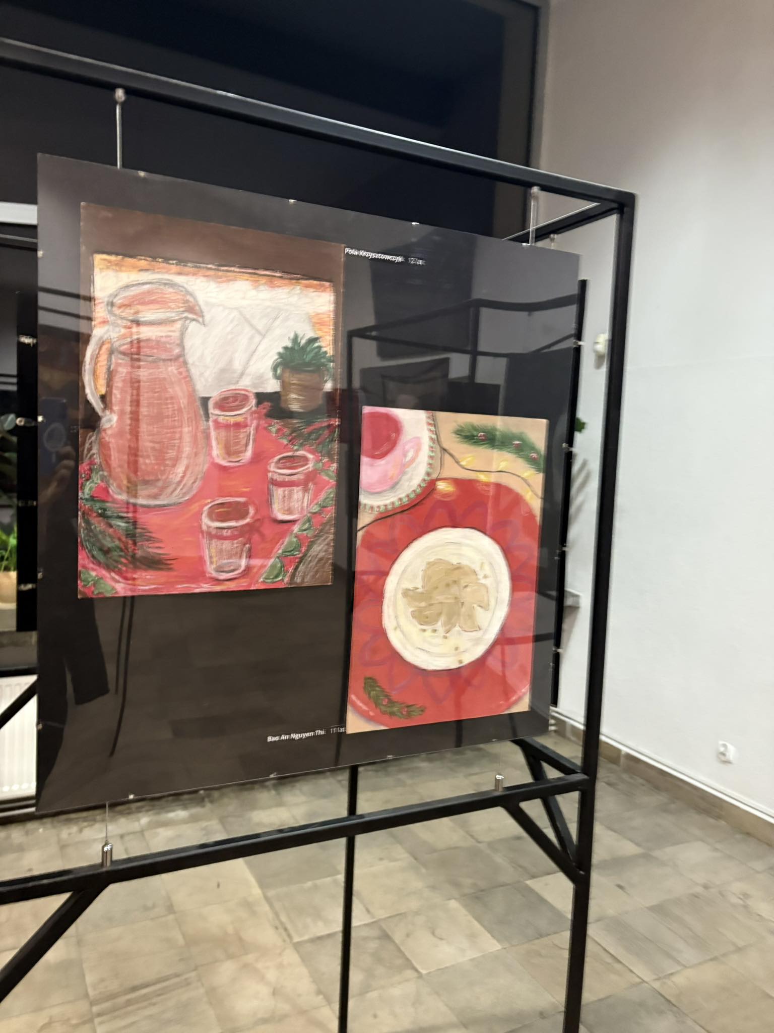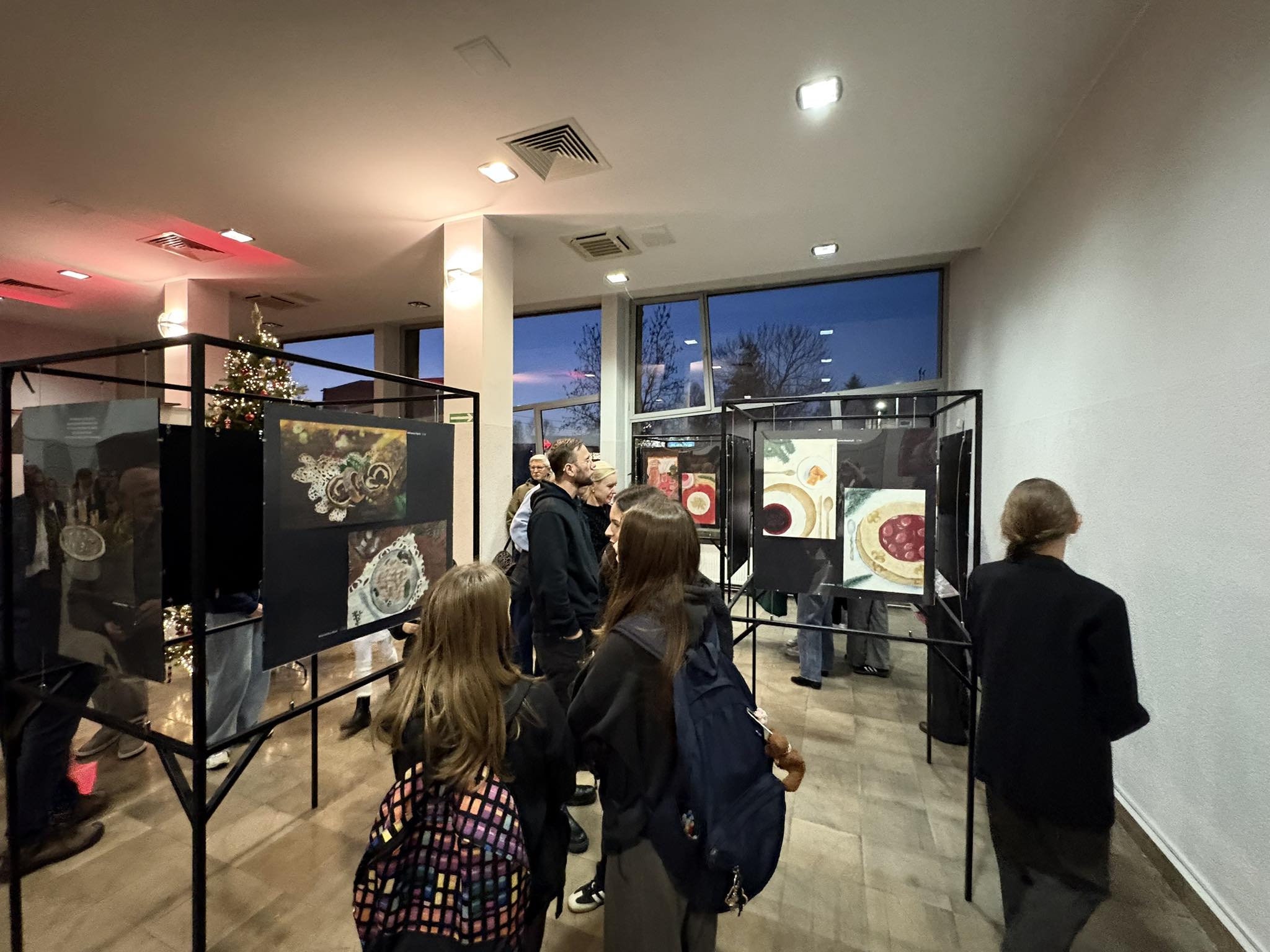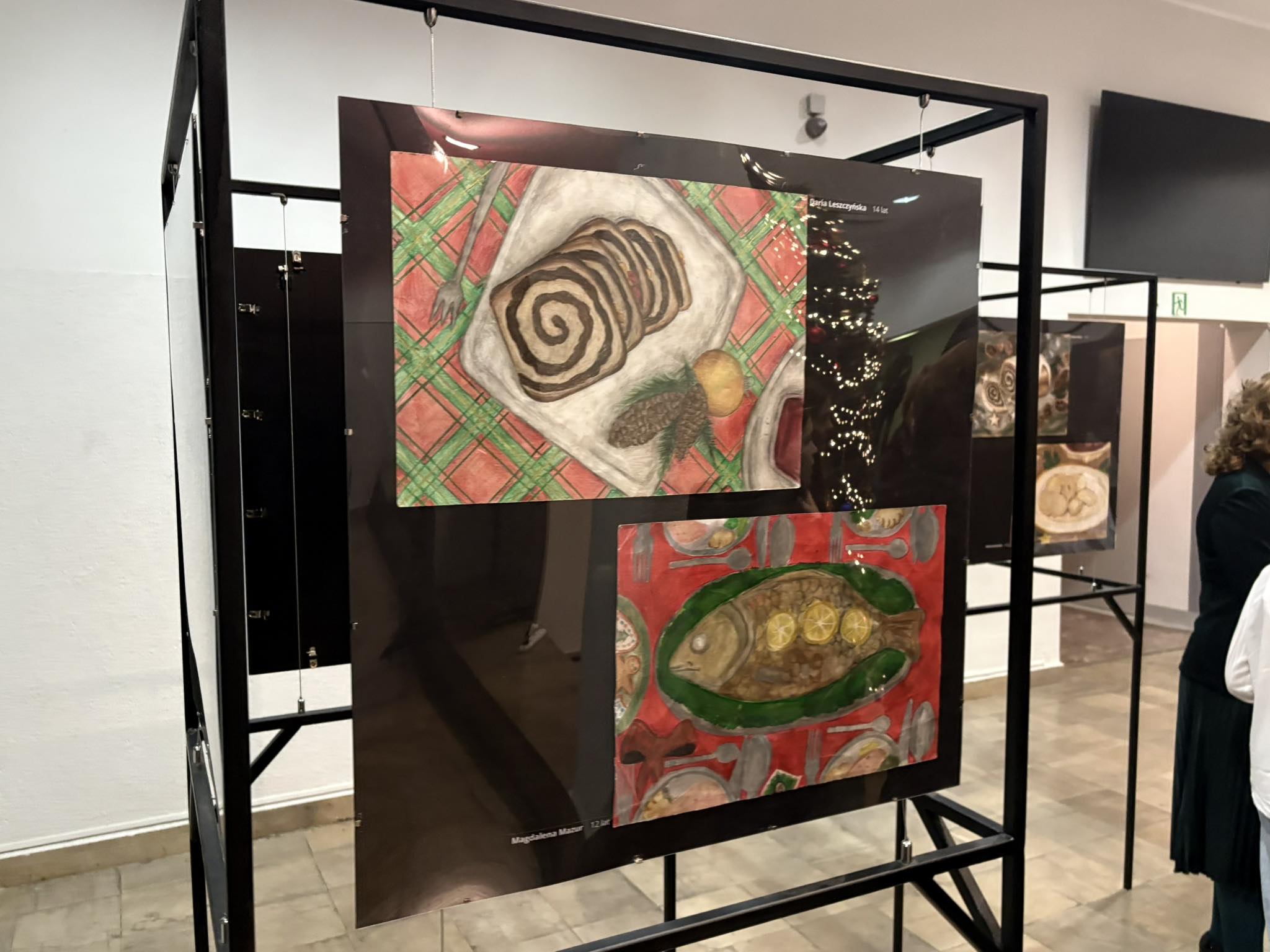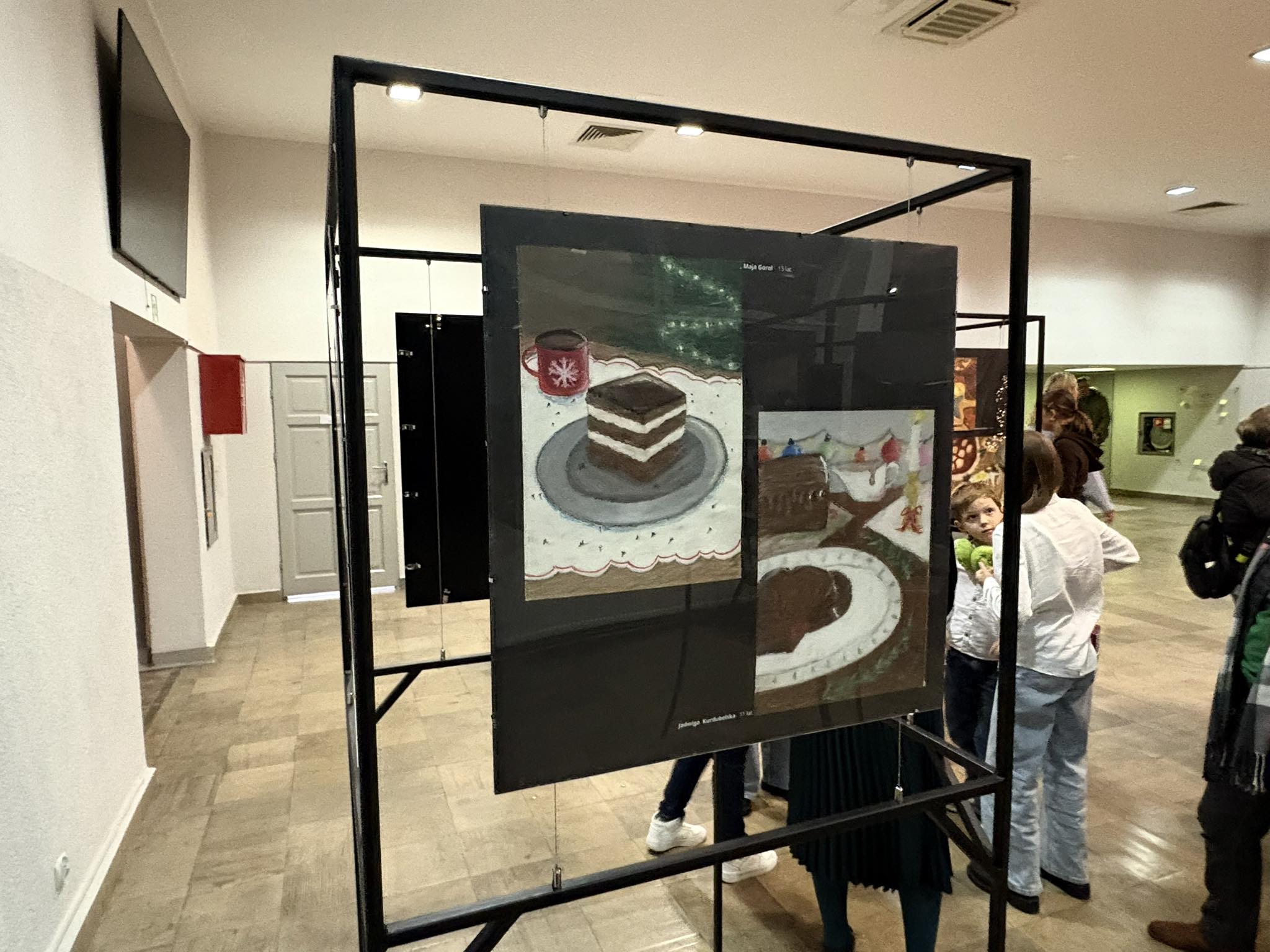 Przybyła publiczność – Pani Dyrektor Anna Łakomska-Ciołczyk, Pani Wicedyrektor Katarzyna Pluta, Rodzice i Dziadkowie młodych artystów oraz pracownicy Przystanku – z zachwytem komentowali zilustrowane potrawy bożonarodzeniowe. Przepiękna barwa czerwonego barszczu , smakowite karpie z chrupiącą skórką, bajeczne makowce z błyszczącą polewą lukrową , puszyste serniczki i pierniki, których zapach wydawał się unosić w powietrzu.