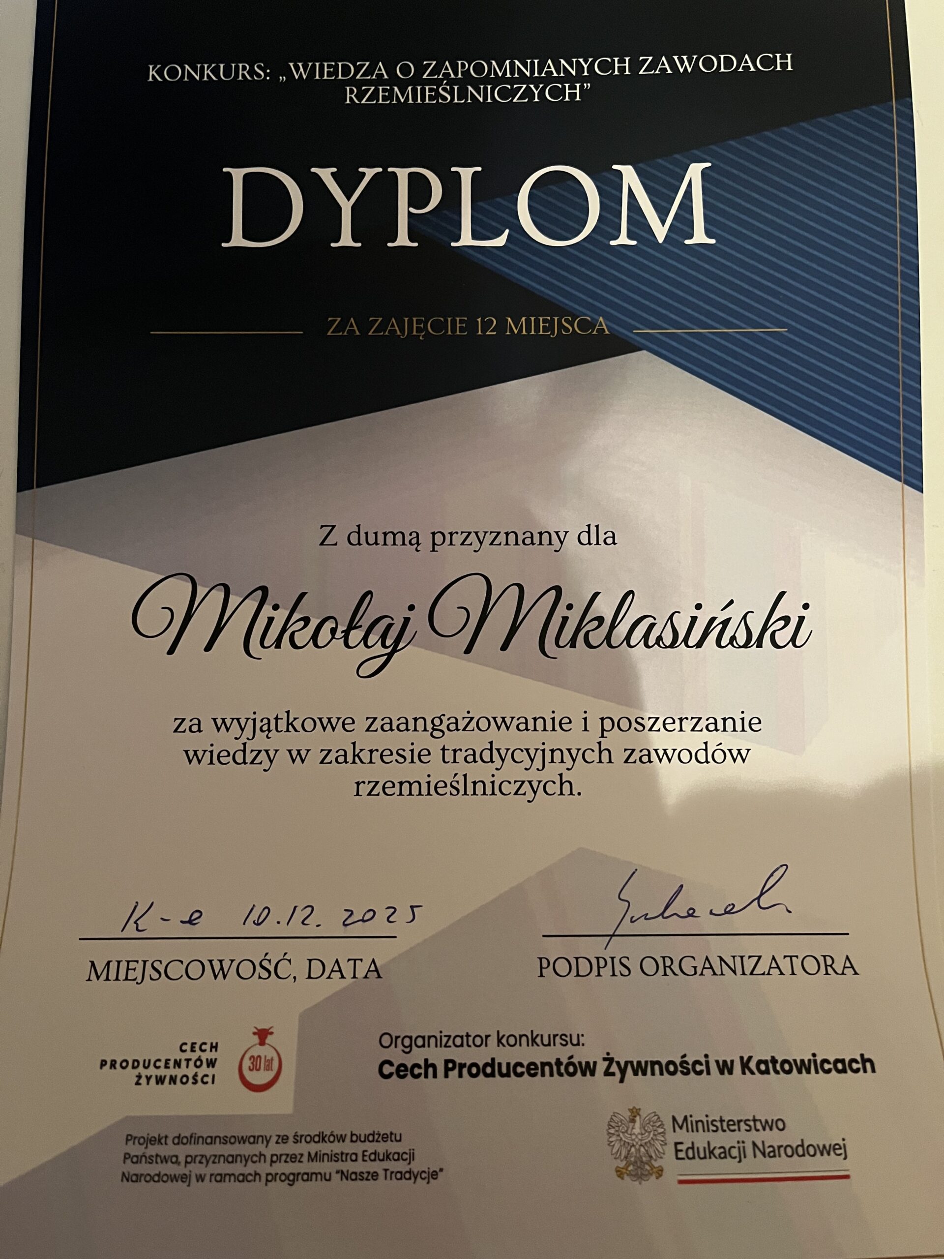 rzemiosł 📜. Nasi uczniowie zajęli w nim wysokie miejsca, otrzymując cenne nagrody rzeczowe.