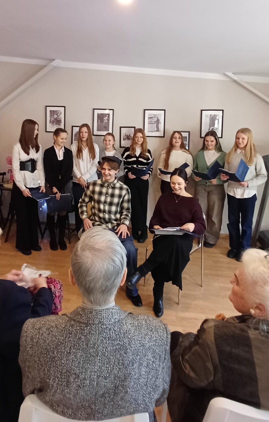 🎶 Seniorzy z przyjemnością powrócili do swoich młodzieńczych lat, opowiadając zabawne historie z życia szkolnych lat.