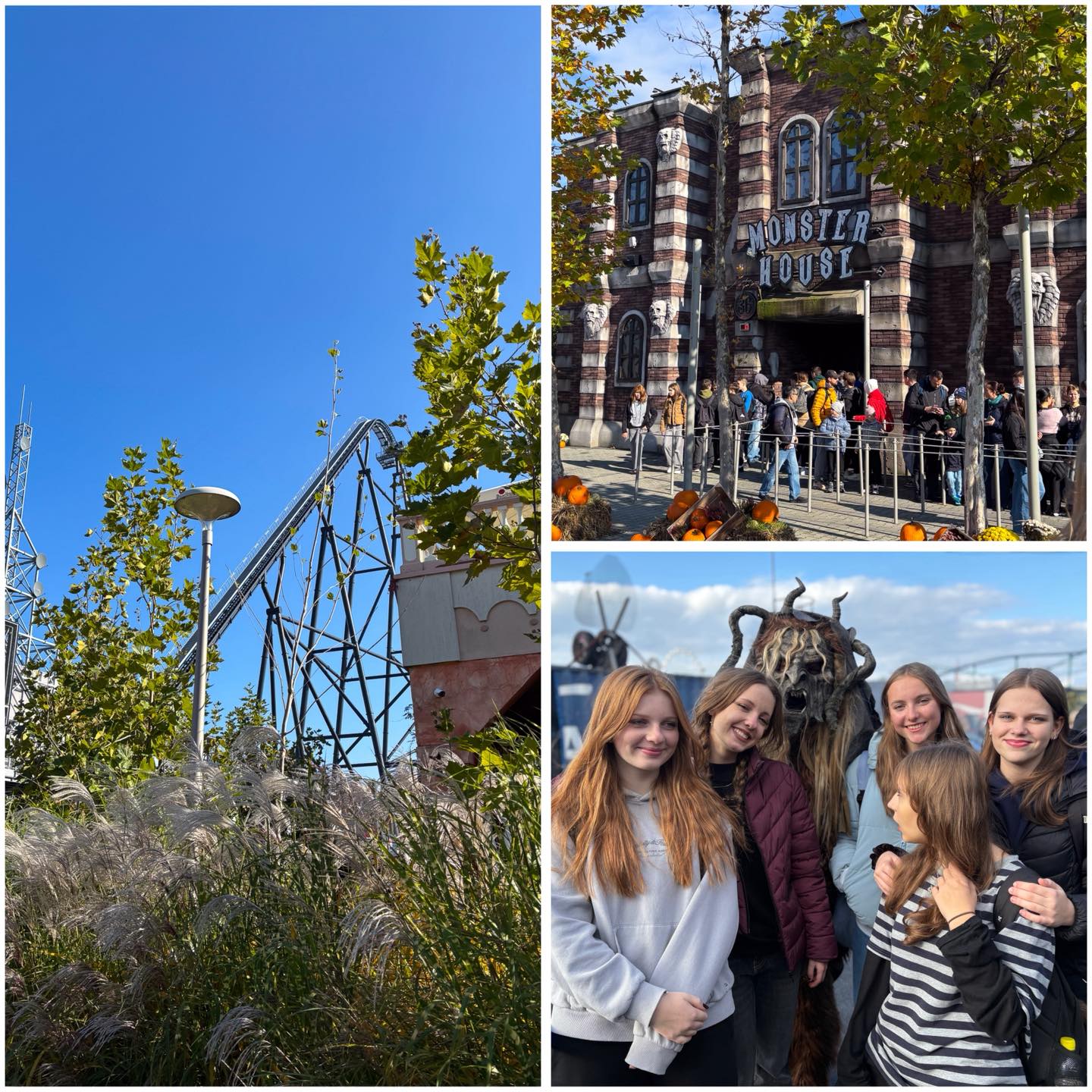 Uczniowie z radością korzystali z licznych atrakcji parku rozrywki 🎡🎠 – od emocjonujących rollercoasterów 🎢💨 po spokojniejsze strefy relaksu 🌳☕