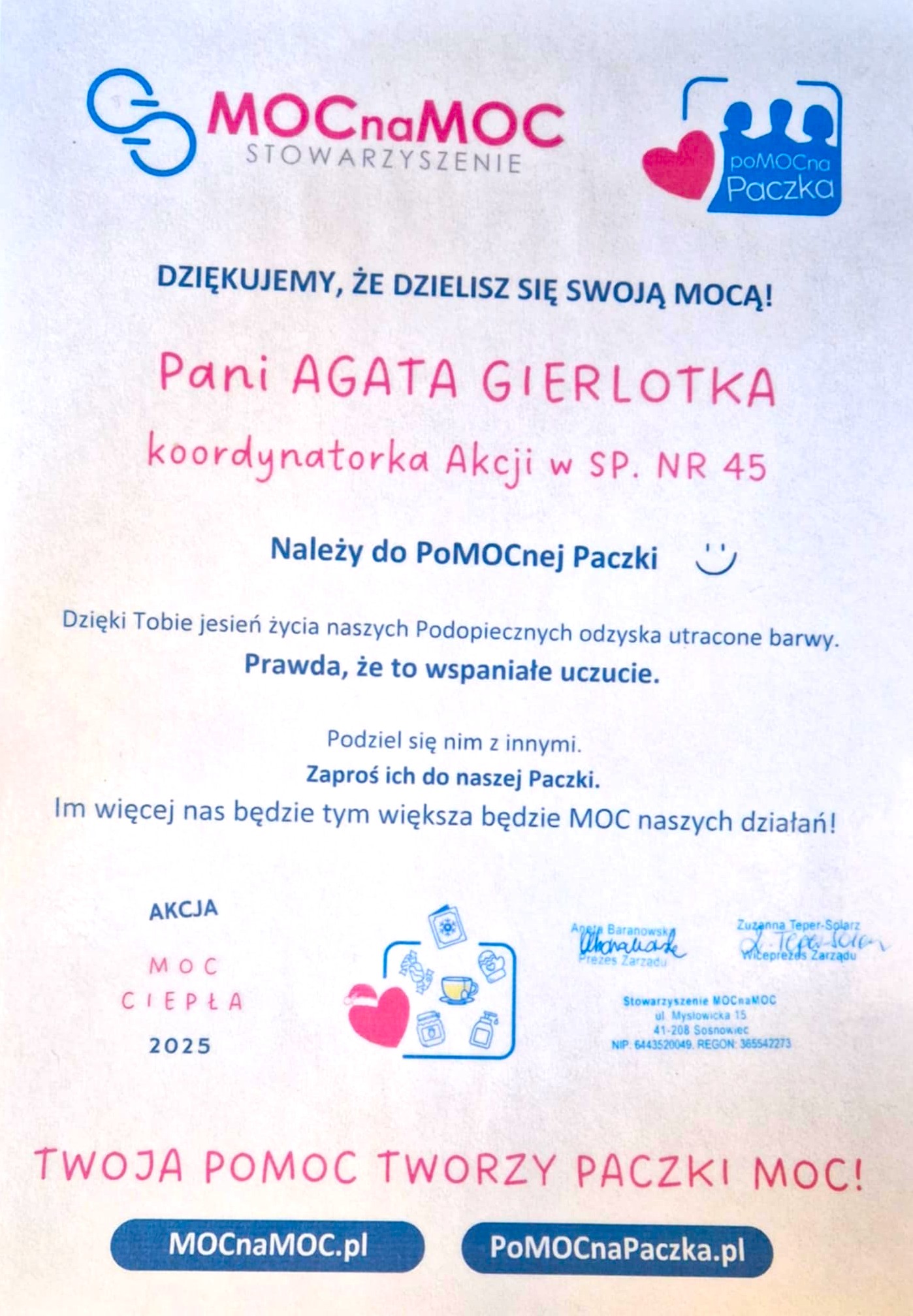 koordynatorki akcji — Pani Agaty Gierlotki 👩‍🏫